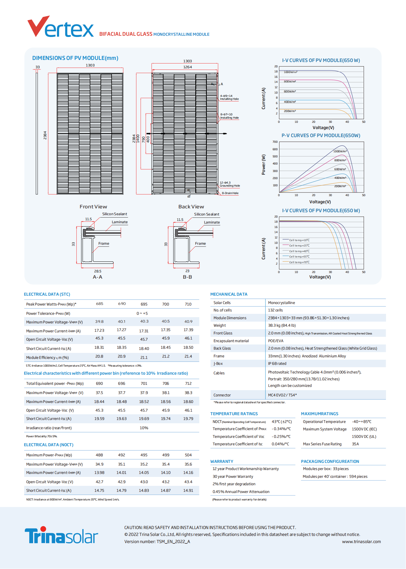 Trina N-type i-Top con Bifacial TSM 695w, 700w, 705w, 710w, 715w, 720w