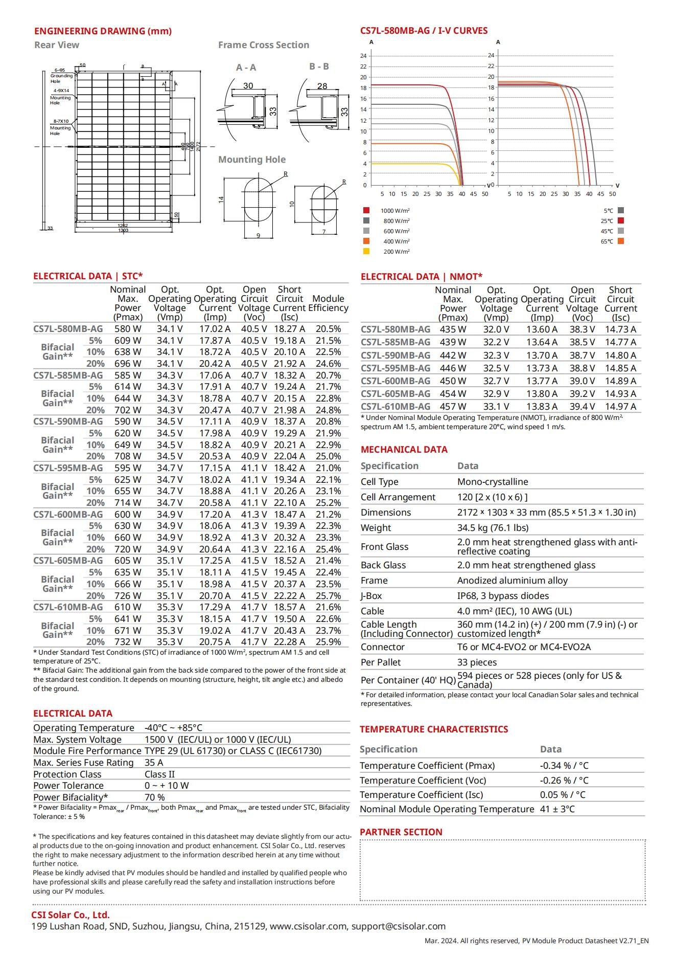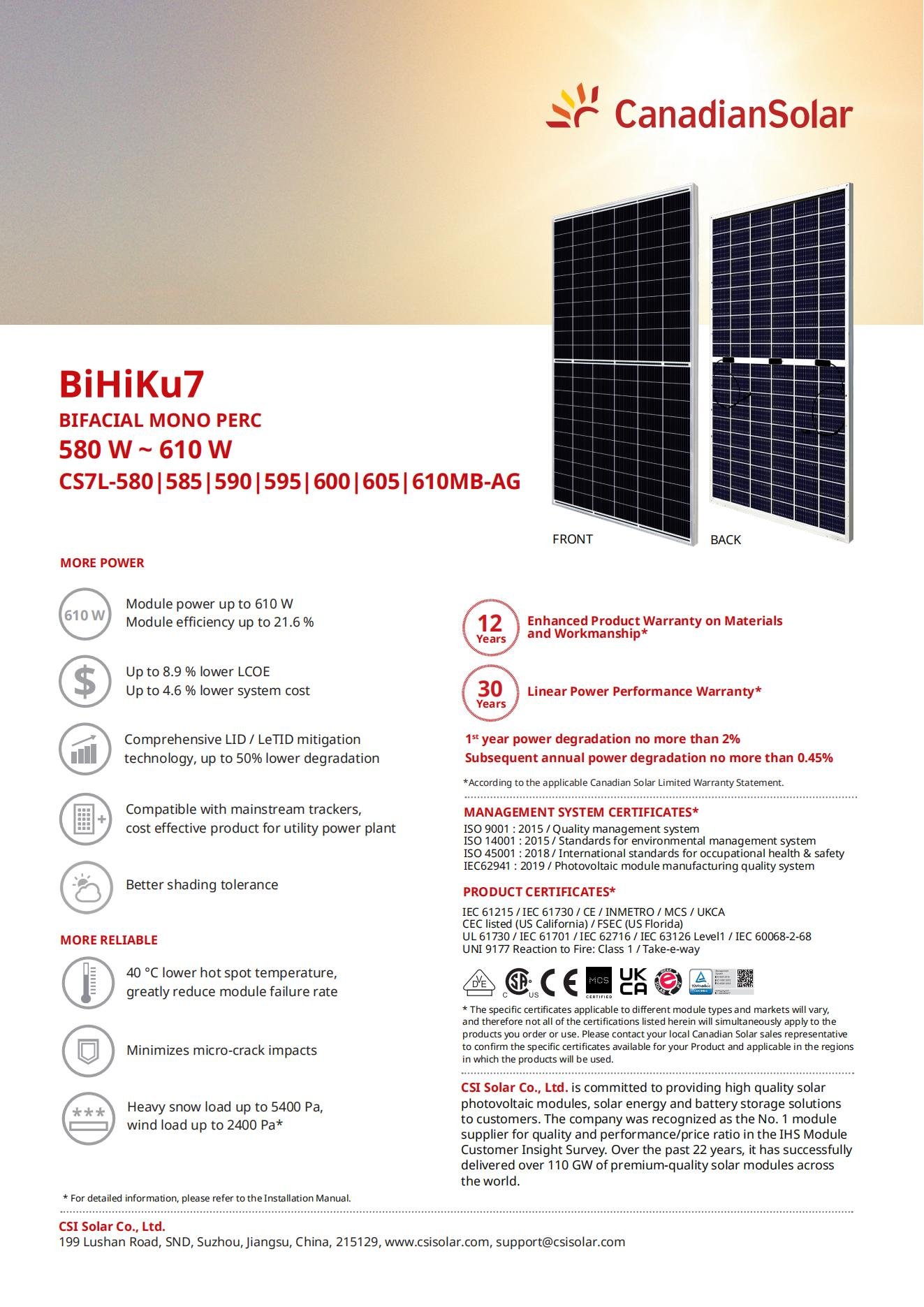 Canadia BIFACIAL MONO PERC BiHiKu7 CS7L-580w, 585w,590w,595w,600w,605w,610w